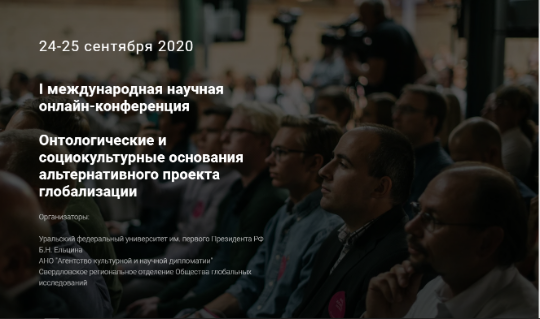24-25 сентября 2020 года совместно с УрФУ была проведения I Международная научная онлайн-конференция "Онтологические и социокультурные основания альтернативного проекта глобализации"